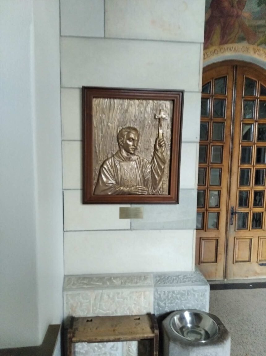 Teraz można ją podziwiać w przedsionku kościoła. Jej umiejscowienie nie jest jednak przypadkowe. To jest miejsce, gdzie wejść może każdy i niemalże o każdej porze dnia. To także tam jest umiejscowiona mniejsza tabliczka na której czytamy, że bł. ks. Jerzy Popiełuszko w Szaflarach bywał na pewno w latach 1980 – 1984, a być może i wcześniej. Gościły go siostry ze Zgromadzenia Najświętszego Imienia Jezus w swym niepozornym klasztorze w pobliżu kościoła p.w. Św. Andrzeja Apostoła.